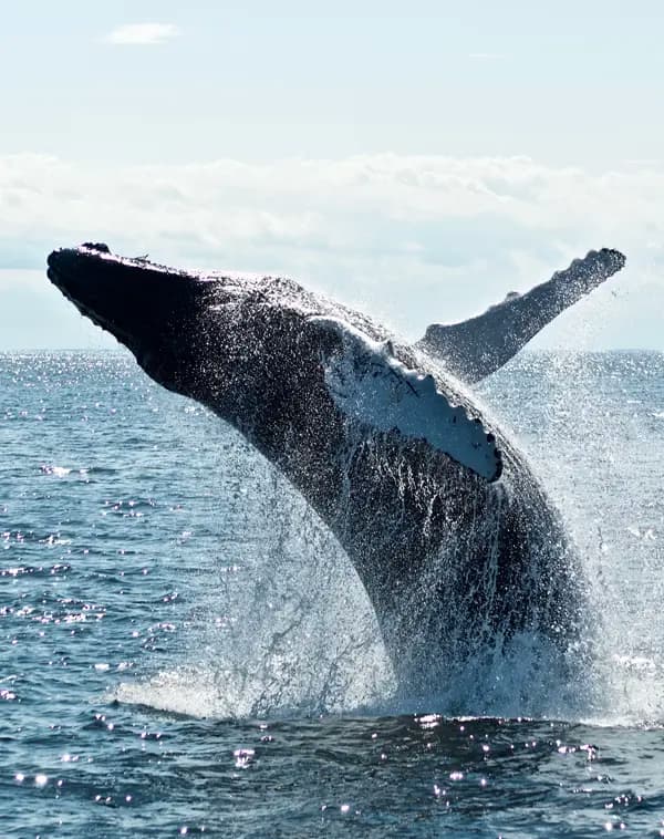 - Humpback whale: famous for its impressive breaches and underwater songs that travel for kilometers.
