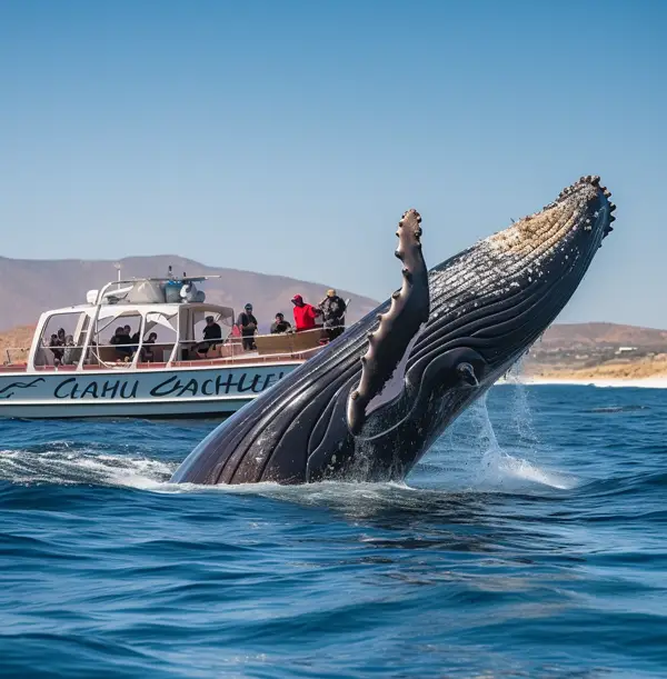 Imagine standing by the sea, feeling the salty breeze, and suddenly seeing a humpback whale over 30 tons rise majestically from the water right before your eyes. That’s what awaits during the whale watching Cabo San Lucas season.